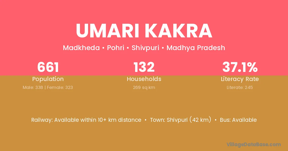 Shivpuri (42 km) is the nearest town to Umari Kakra village for major economic activities and is located approximately 42 km away.