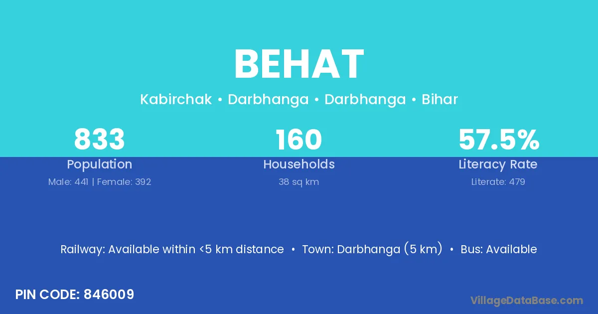 The literacy rate of Behat village is 44.66%. Male literacy stands at 55.50% and female literacy at 30.77%.