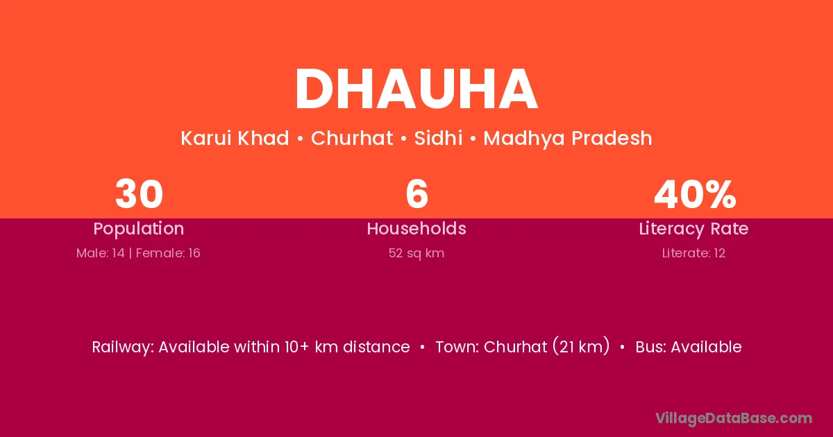 Churhat (21 km) is the nearest town to Dhauha village for major economic activities and is located approximately 21 km away.