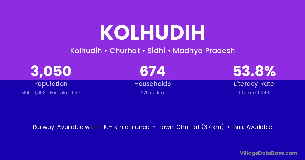 Churhat (37 km) is the nearest town to Kolhudih village for major economic activities and is located approximately 37 km away.