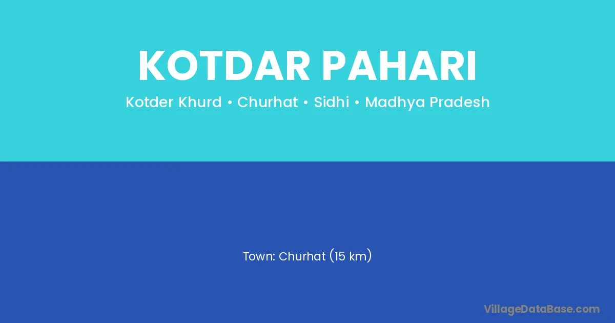 Churhat (15 km) is the nearest town to Kotdar Pahari village for major economic activities and is located approximately 15 km away.