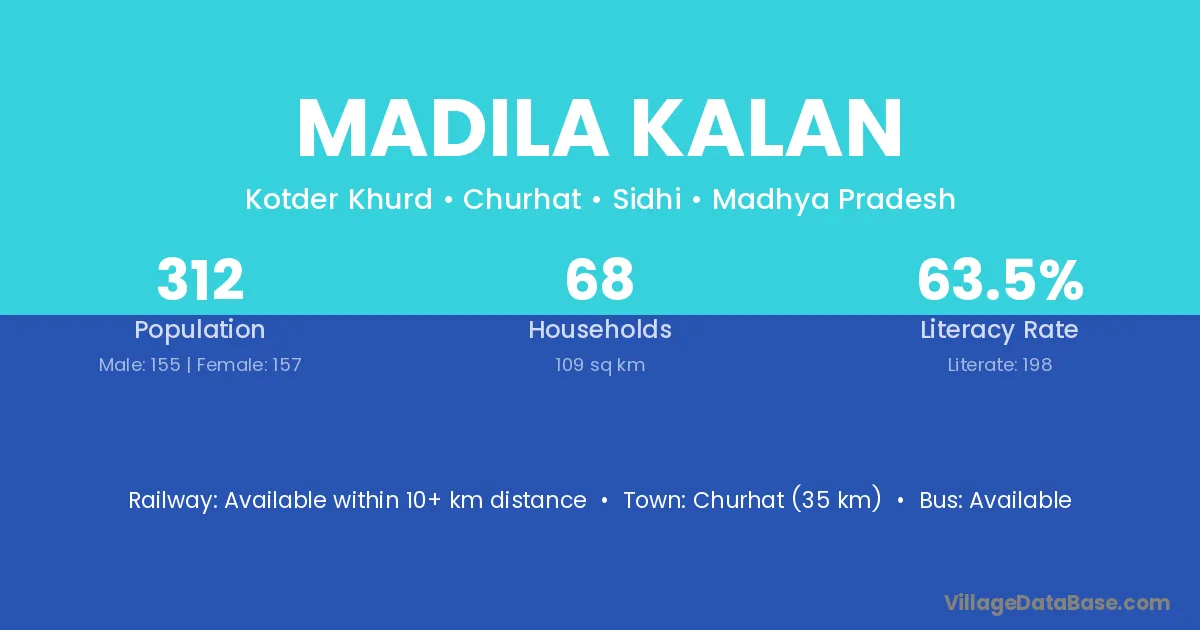 Madila Kalan village has a total population of 312 people, of which 155 are males and 157 are females.
