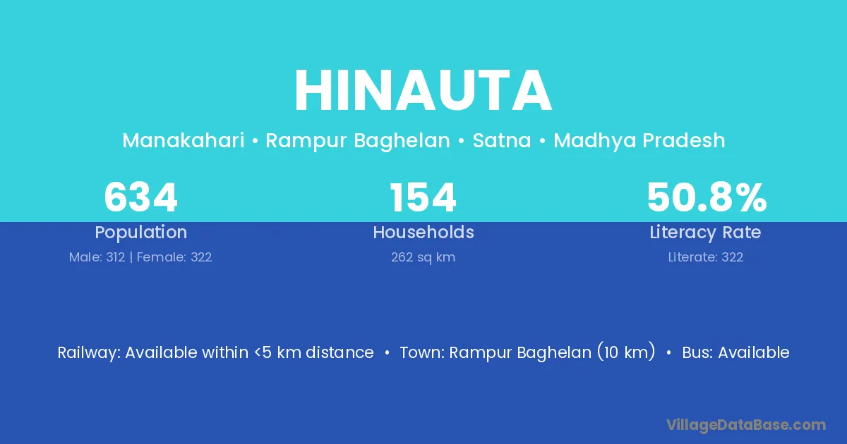 Sidhi (3 km) is the nearest town to Hinauta village for major economic activities and is located approximately 3 km away.