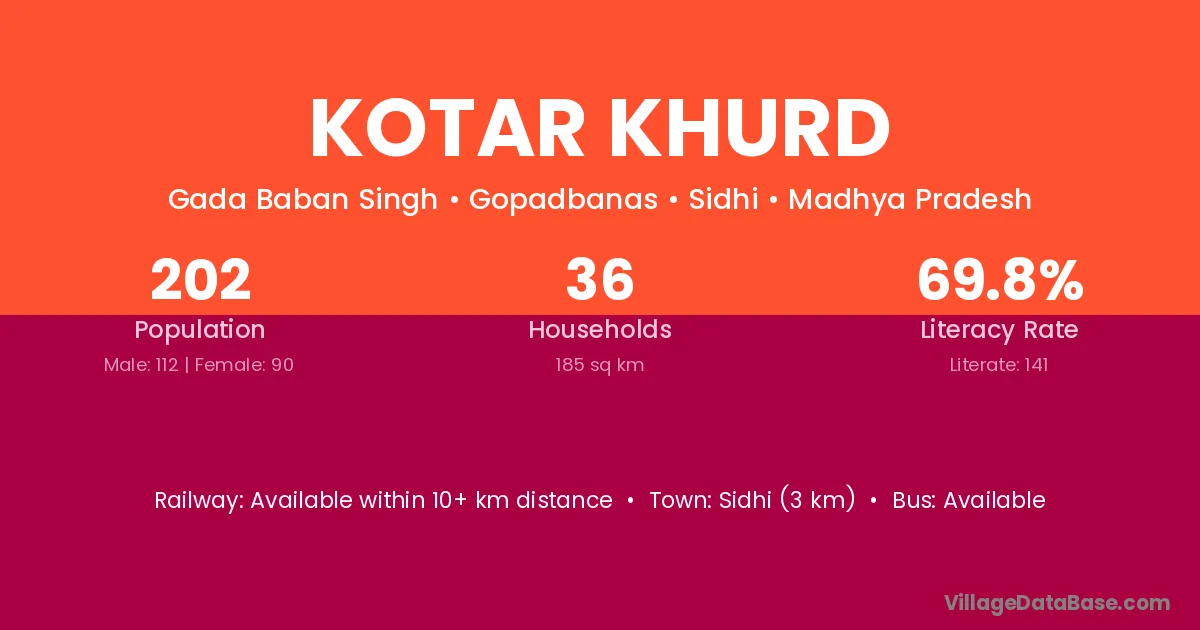 Sidhi (3 km) is the nearest town to Kotar Khurd village for major economic activities and is located approximately 3 km away.