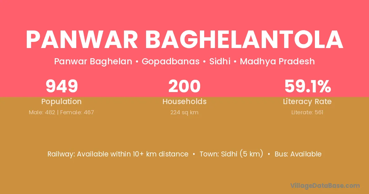 Panwar Baghelantola village has a total population of 949 people, of which 482 are males and 467 are females.