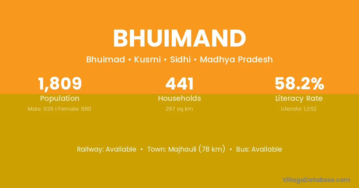 Majhauli (78 km) is the nearest town to Bhuimand village for major economic activities and is located approximately 78 km away.
