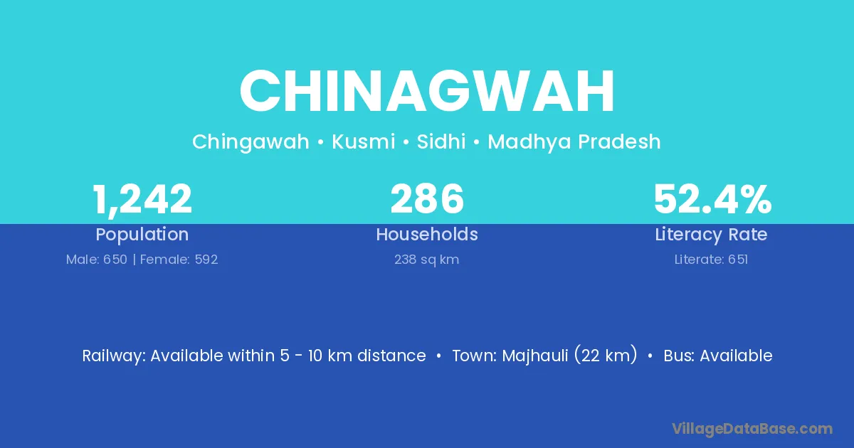 Chinagwah village has a total population of 1,242 people, of which 650 are males and 592 are females.