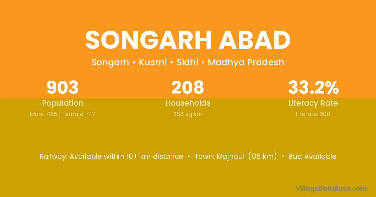 Majhauli (85 km) is the nearest town to Songarh Abad village for major economic activities and is located approximately 85 km away.