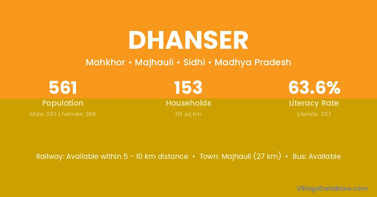 Majhauli (27 km) is the nearest town to Dhanser village for major economic activities and is located approximately 27 km away.