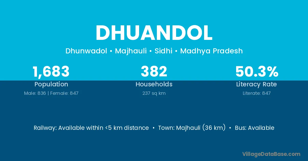Majhauli (36 km) is the nearest town to Dhuandol village for major economic activities and is located approximately 36 km away.