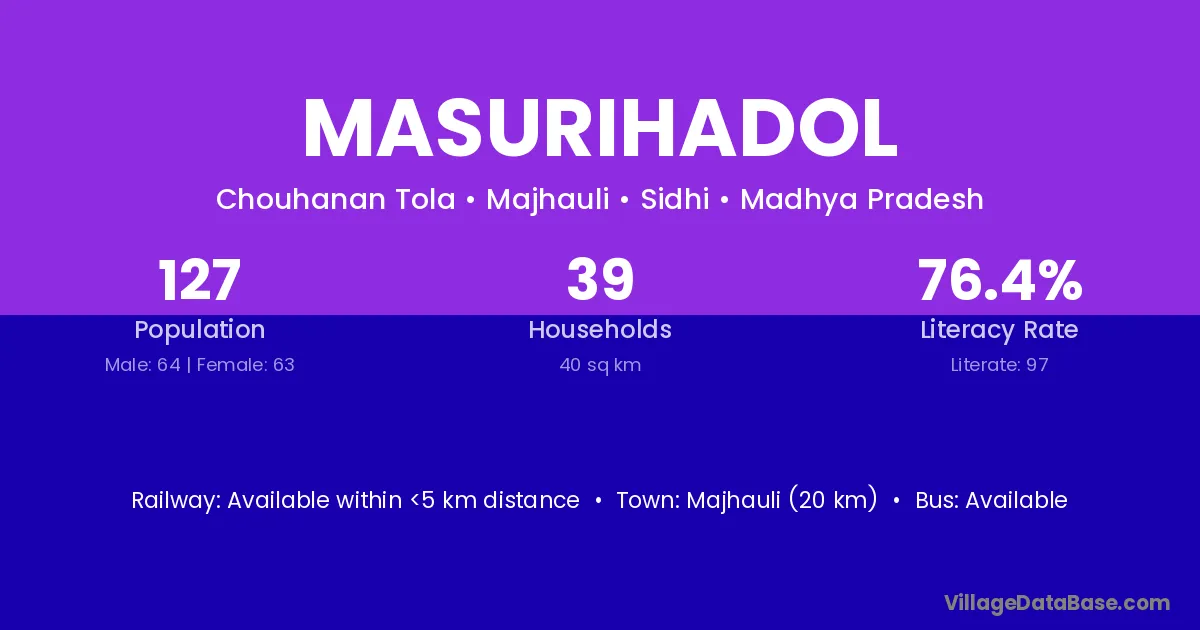 Masurihadol village has a total population of 127 people, of which 64 are males and 63 are females.