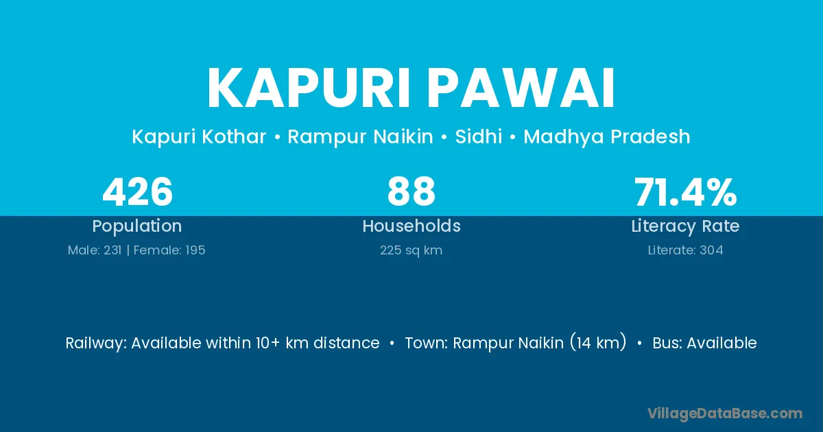 Kapuri Pawai village has a total population of 426 people, of which 231 are males and 195 are females.