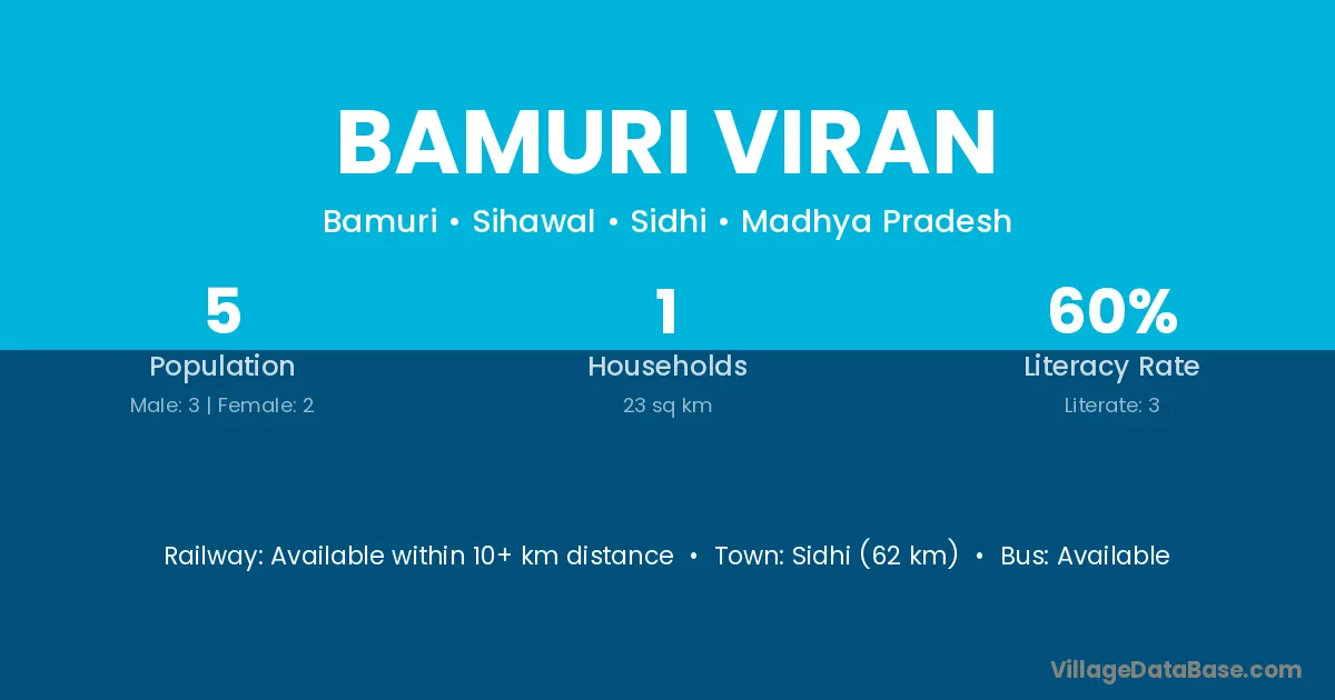 Bamuri Viran village has a total population of 5 people, of which 3 are males and 2 are females.