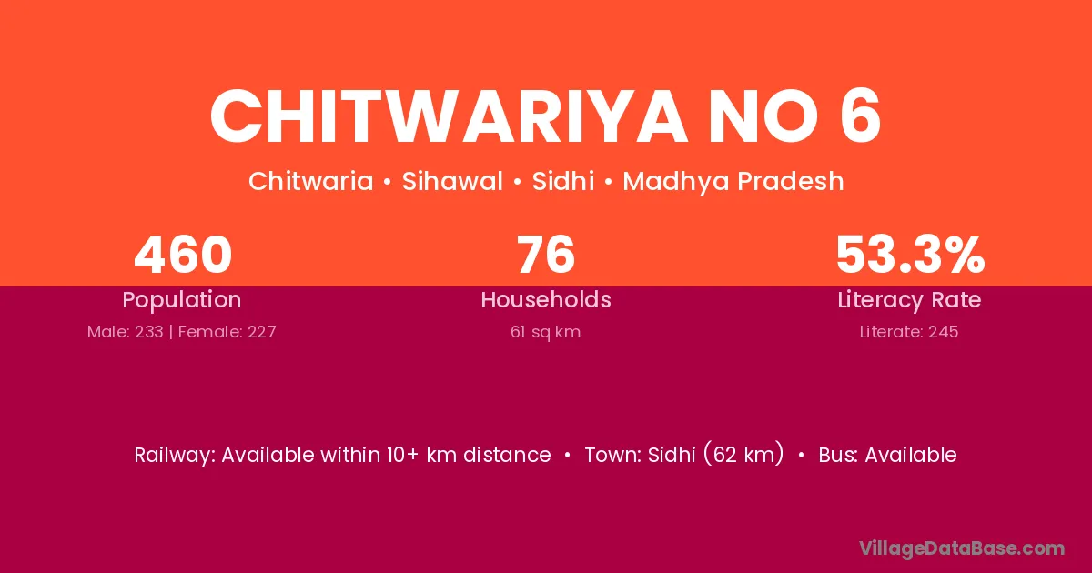 Chitwariya No 6 village has a total population of 460 people, of which 233 are males and 227 are females.