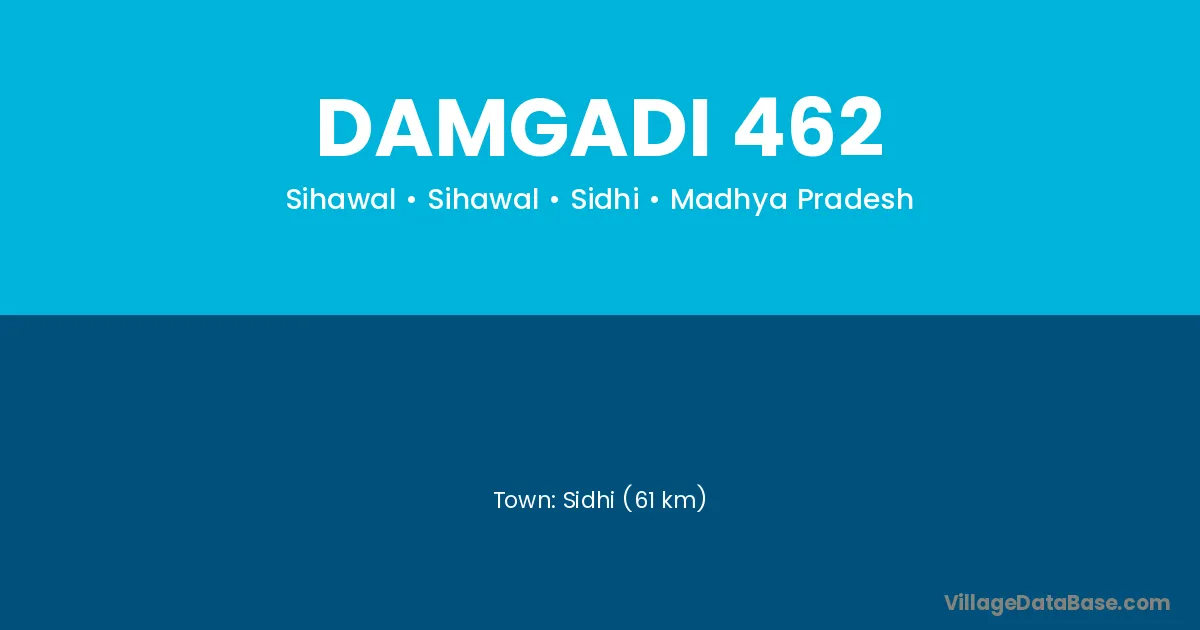 Sidhi (61 km) is the nearest town to Damgadi 462 village for major economic activities and is located approximately 61 km away.