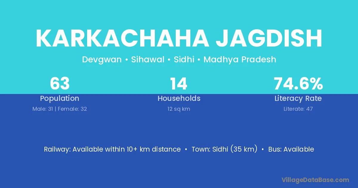 Karkachaha Jagdish village has a total population of 63 people, of which 31 are males and 32 are females.