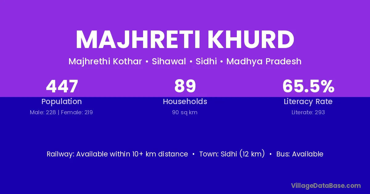 Sidhi (12 km) is the nearest town to Majhreti Khurd village for major economic activities and is located approximately 12 km away.