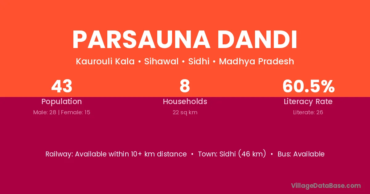 Sidhi (46 km) is the nearest town to Parsauna Dandi village for major economic activities and is located approximately 46 km away.