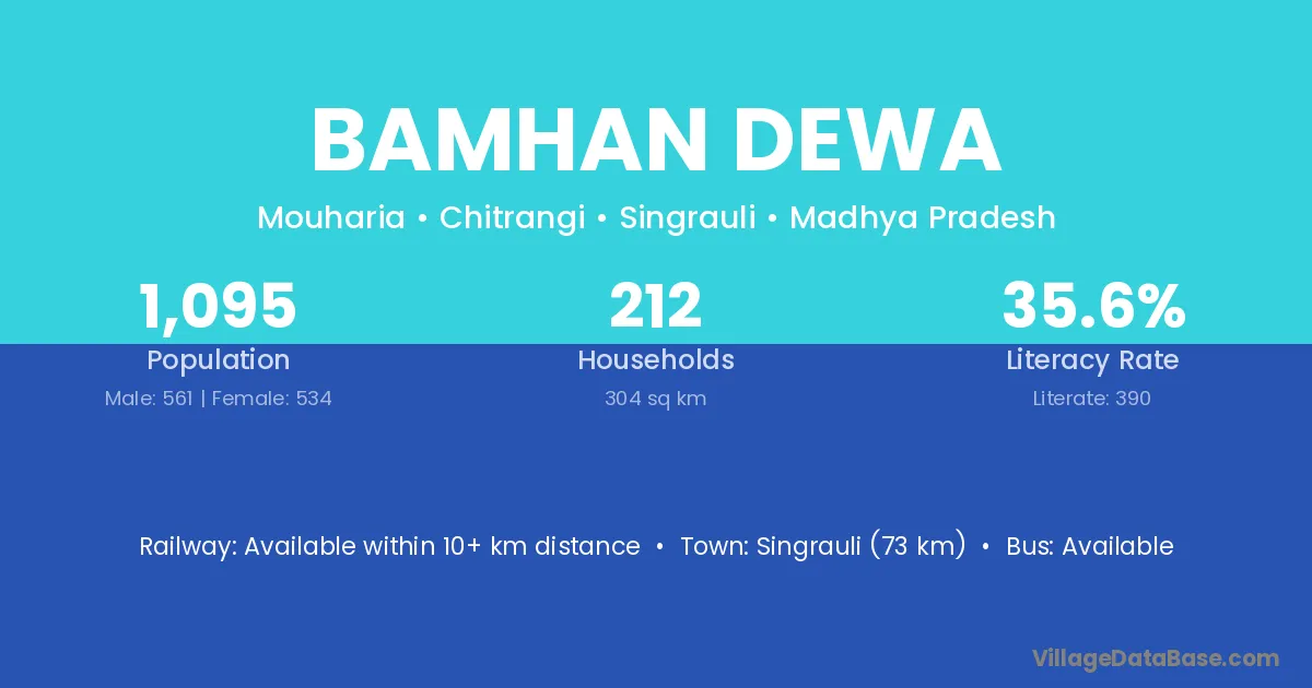Singrauli (73 km) is the nearest town to Bamhan Dewa village for major economic activities and is located approximately 73 km away.