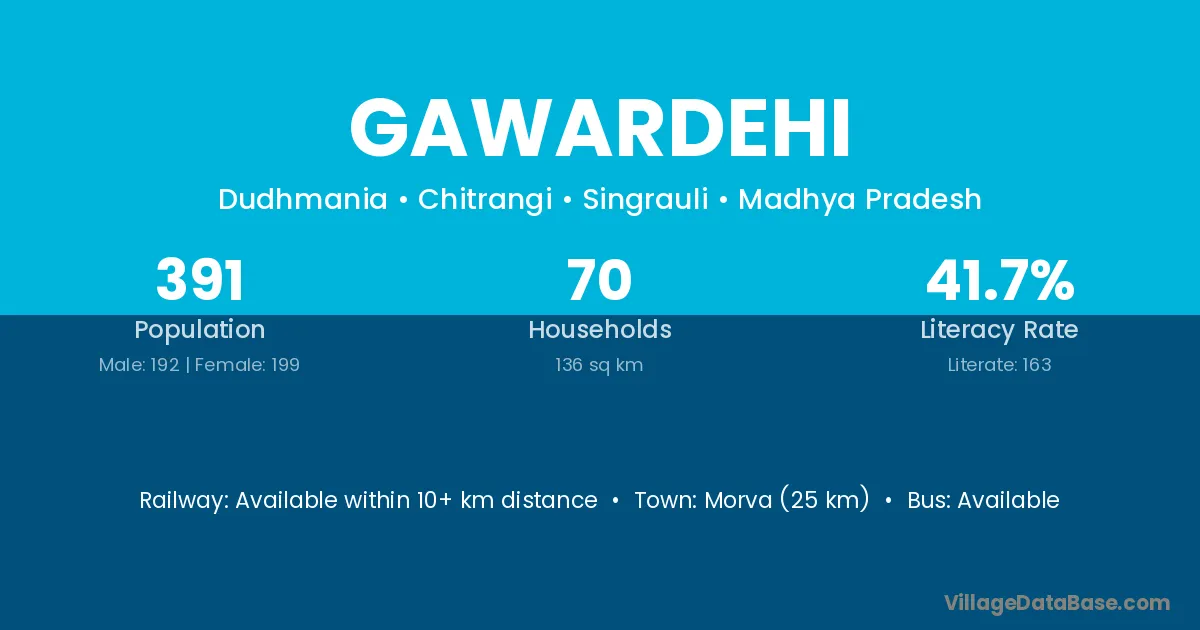 Morva (25 km) is the nearest town to Gawardehi village for major economic activities and is located approximately 25 km away.