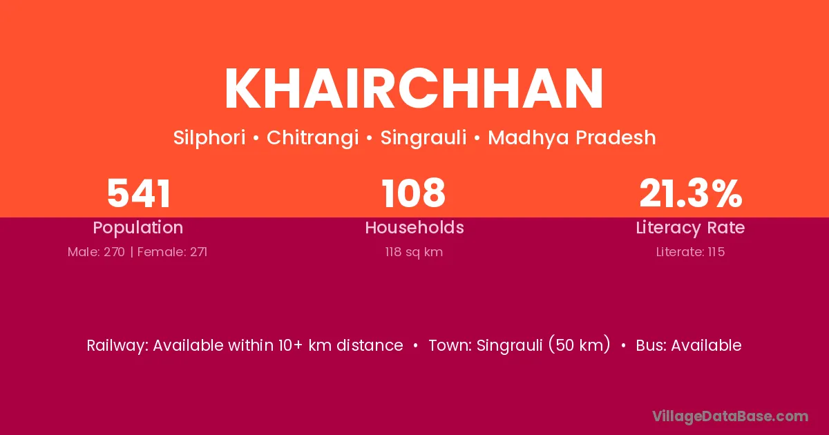 Singrauli (50 km) is the nearest town to Khairchhan village for major economic activities and is located approximately 50 km away.