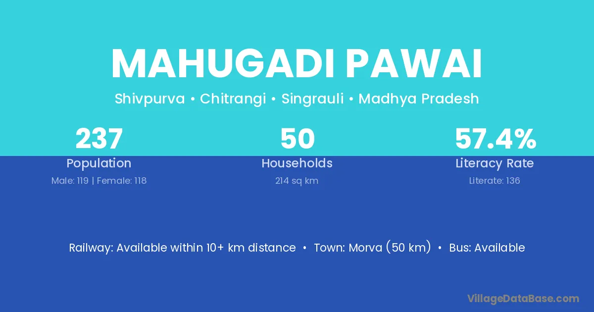 Morva (50 km) is the nearest town to Mahugadi Pawai village for major economic activities and is located approximately 50 km away.