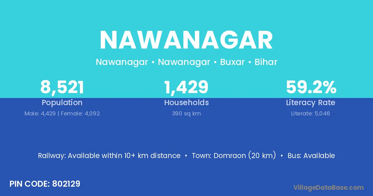 Morva (30 km) is the nearest town to Nawanagar village for major economic activities and is located approximately 30 km away.