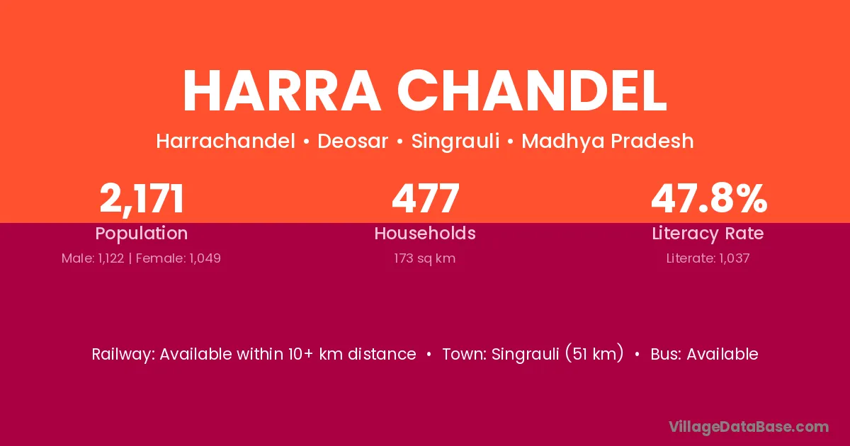 Singrauli (51 km) is the nearest town to Harra Chandel village for major economic activities and is located approximately 51 km away.