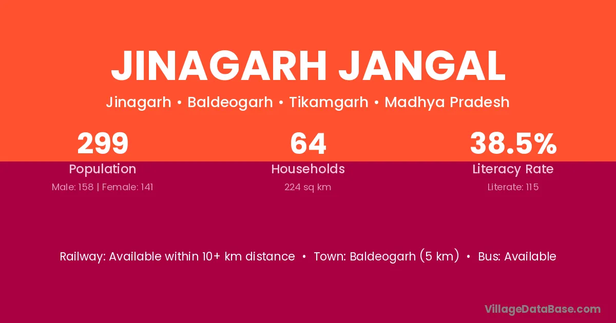 Baldeogarh (5 km) is the nearest town to Jinagarh Jangal village for major economic activities and is located approximately 5 km away.