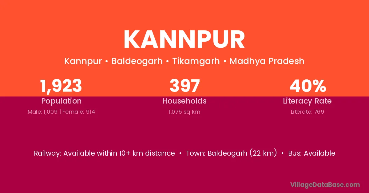 Baldeogarh (22 km) is the nearest town to Kannpur village for major economic activities and is located approximately 22 km away.