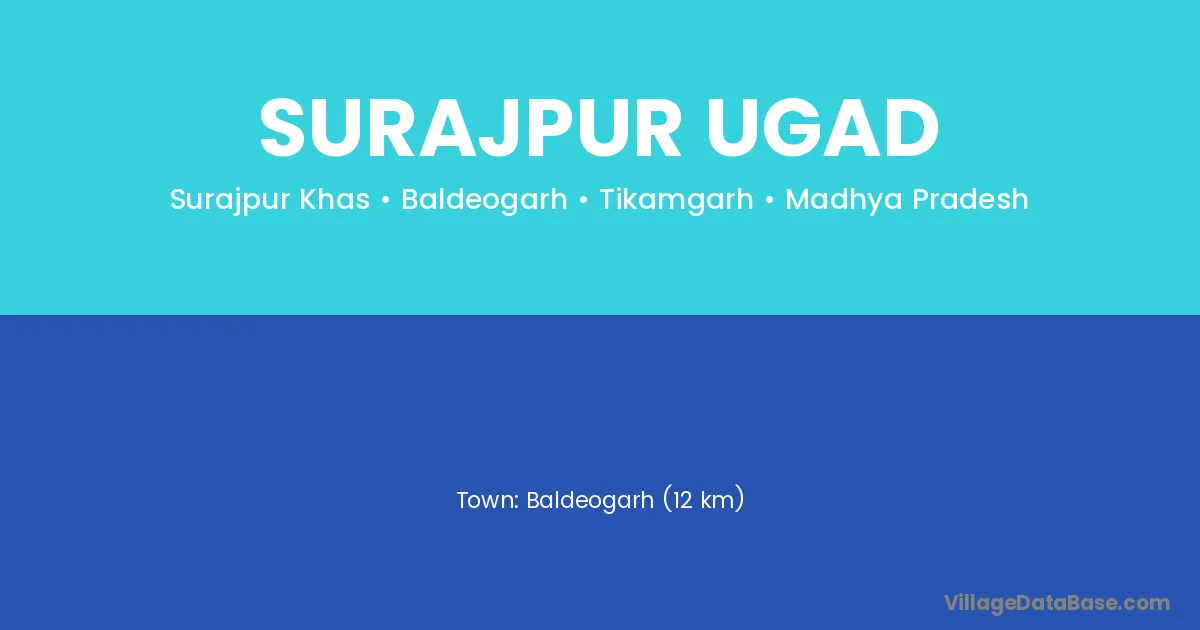Baldeogarh (12 km) is the nearest town to Surajpur Ugad village for major economic activities and is located approximately 12 km away.