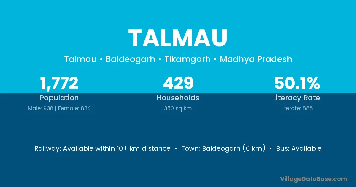 Baldeogarh (6 km) is the nearest town to Talmau village for major economic activities and is located approximately 6 km away.