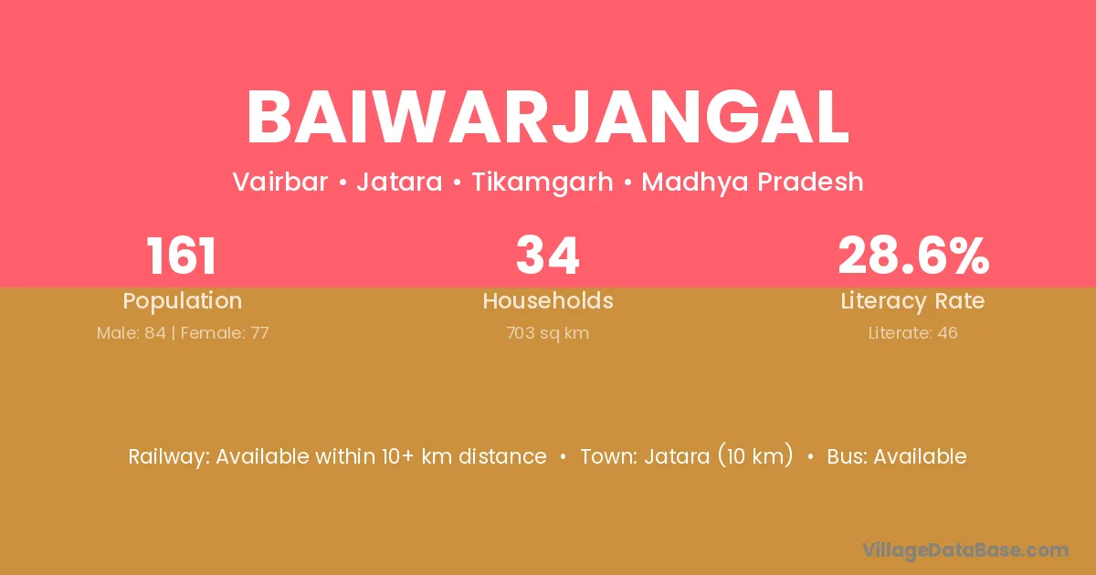 Baiwarjangal village has a total population of 161 people, of which 84 are males and 77 are females.