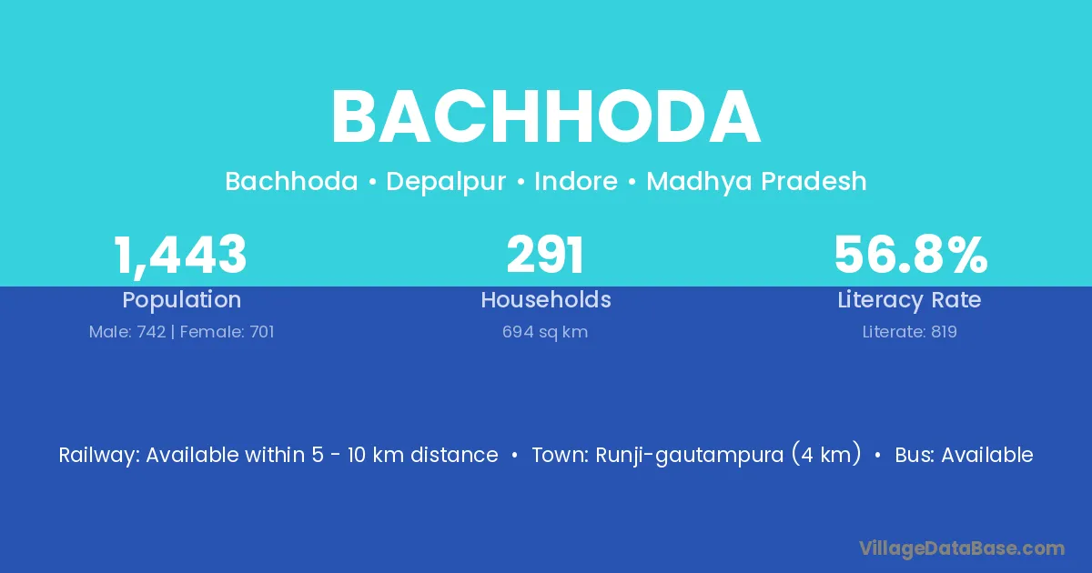 Khargapur (10 km) is the nearest town to Bachhoda village for major economic activities and is located approximately 10 km away.