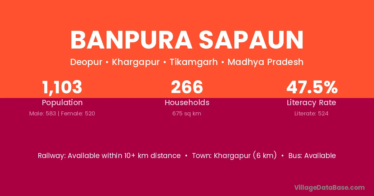 Khargapur (6 km) is the nearest town to Banpura Sapaun village for major economic activities and is located approximately 6 km away.