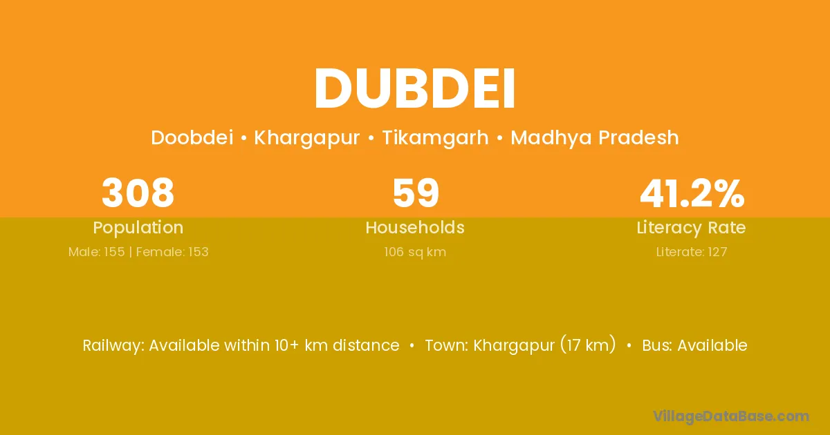 Khargapur (17 km) is the nearest town to Dubdei village for major economic activities and is located approximately 17 km away.