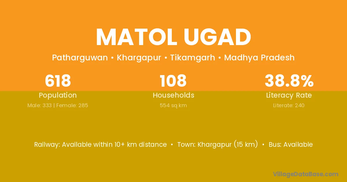 Khargapur (15 km) is the nearest town to Matol Ugad village for major economic activities and is located approximately 15 km away.
