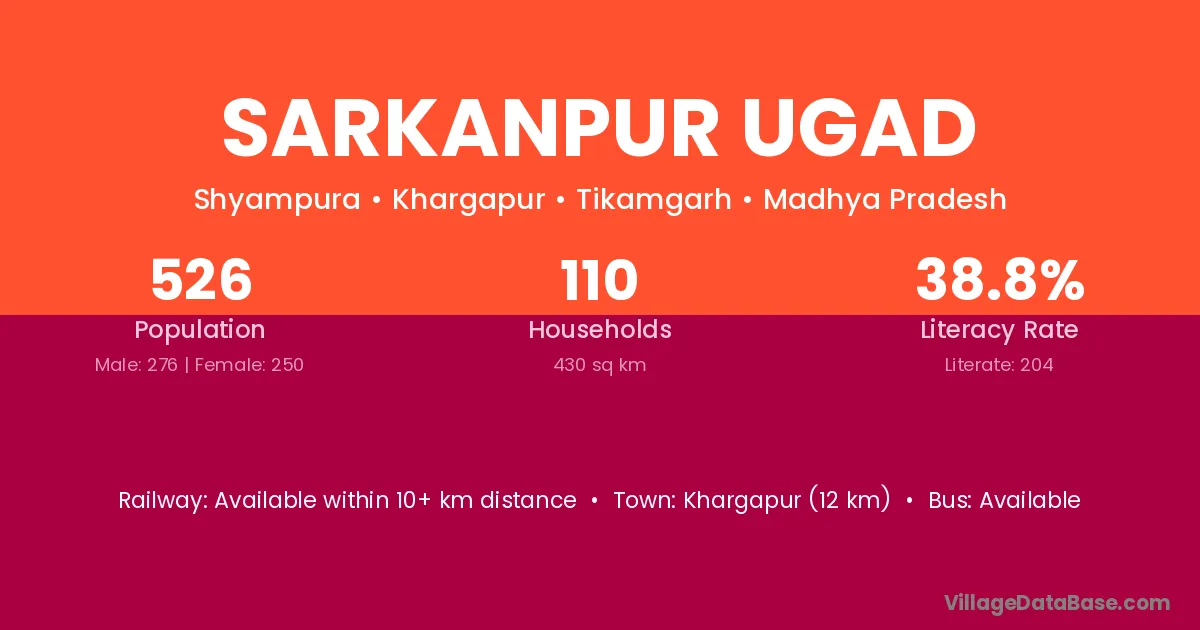 Sarkanpur Ugad village has a total population of 526 people, of which 276 are males and 250 are females.