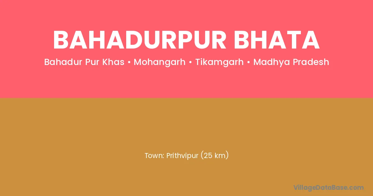 Prithvipur (25 km) is the nearest town to Bahadurpur Bhata village for major economic activities and is located approximately 25 km away.
