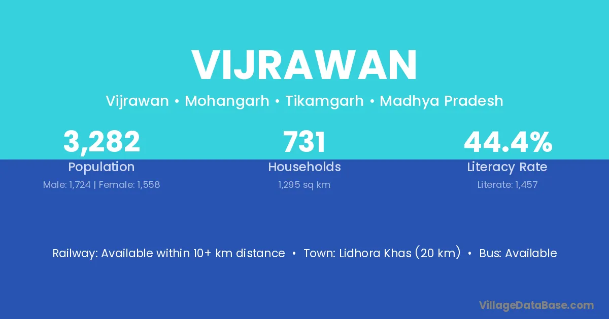 Lidhora Khas (20 km) is the nearest town to Vijrawan village for major economic activities and is located approximately 20 km away.