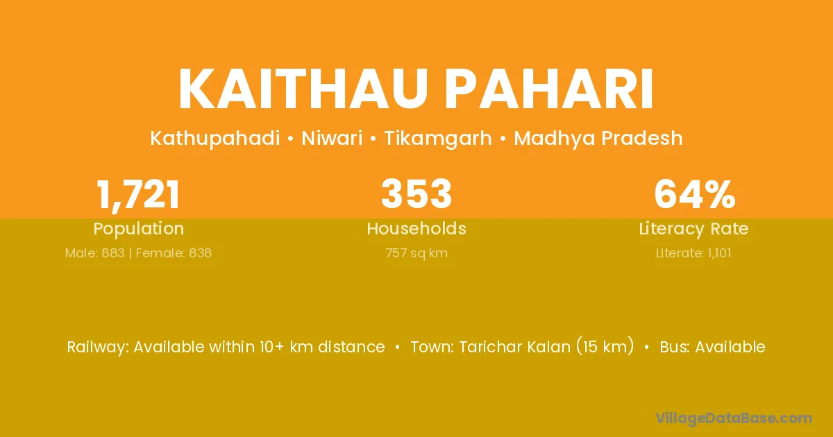 Kaithau Pahari village has a total population of 1,721 people, of which 883 are males and 838 are females.