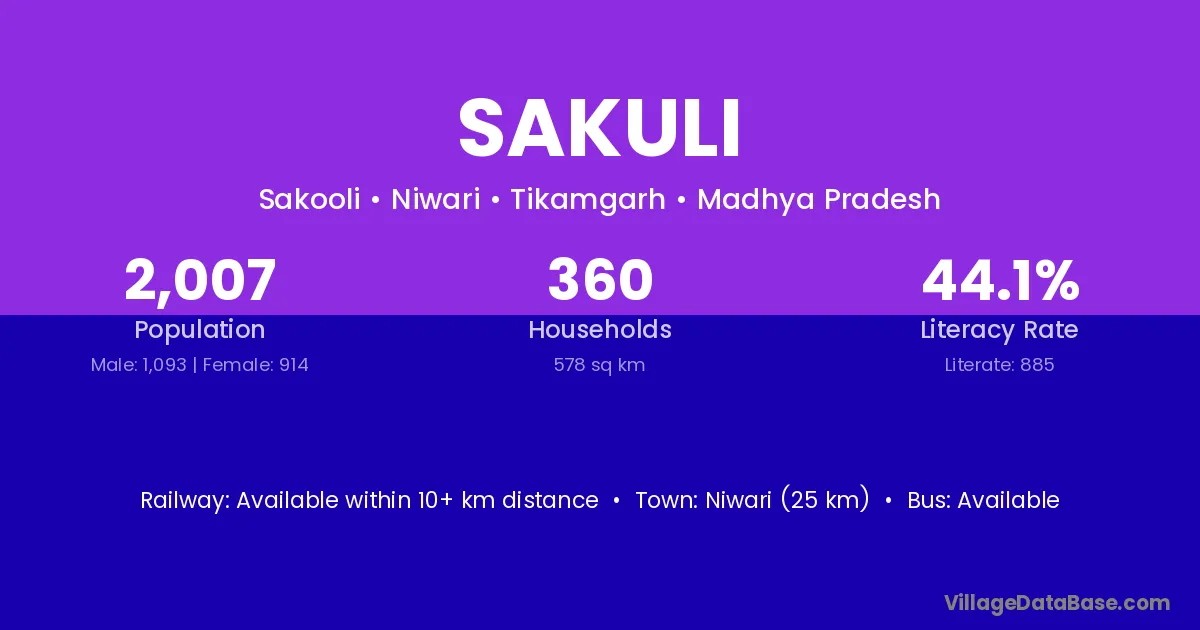 Niwari (25 km) is the nearest town to Sakuli village for major economic activities and is located approximately 25 km away.