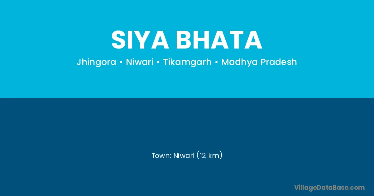 Niwari (12 km) is the nearest town to Siya Bhata village for major economic activities and is located approximately 12 km away.
