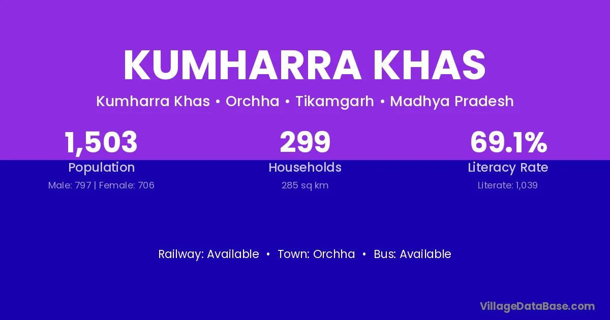 Orchha is the nearest town to Kumharra Khas village for major economic activities