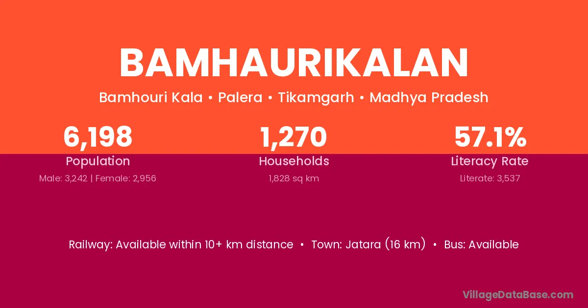 Bamhaurikalan village has a total population of 6,198 people, of which 3,242 are males and 2,956 are females.