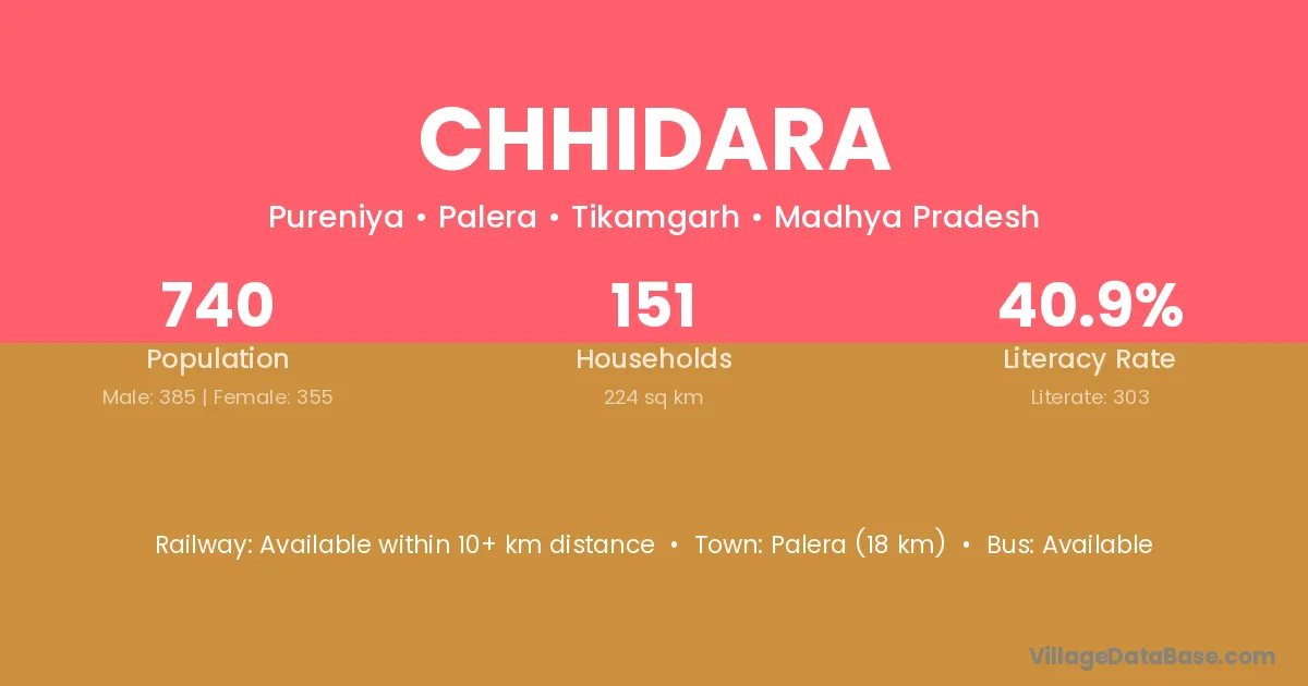 Palera (18 km) is the nearest town to Chhidara village for major economic activities and is located approximately 18 km away.