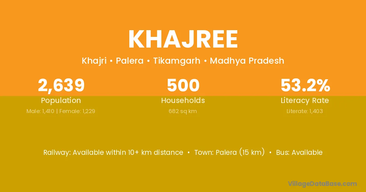 Palera (15 km) is the nearest town to Khajree village for major economic activities and is located approximately 15 km away.