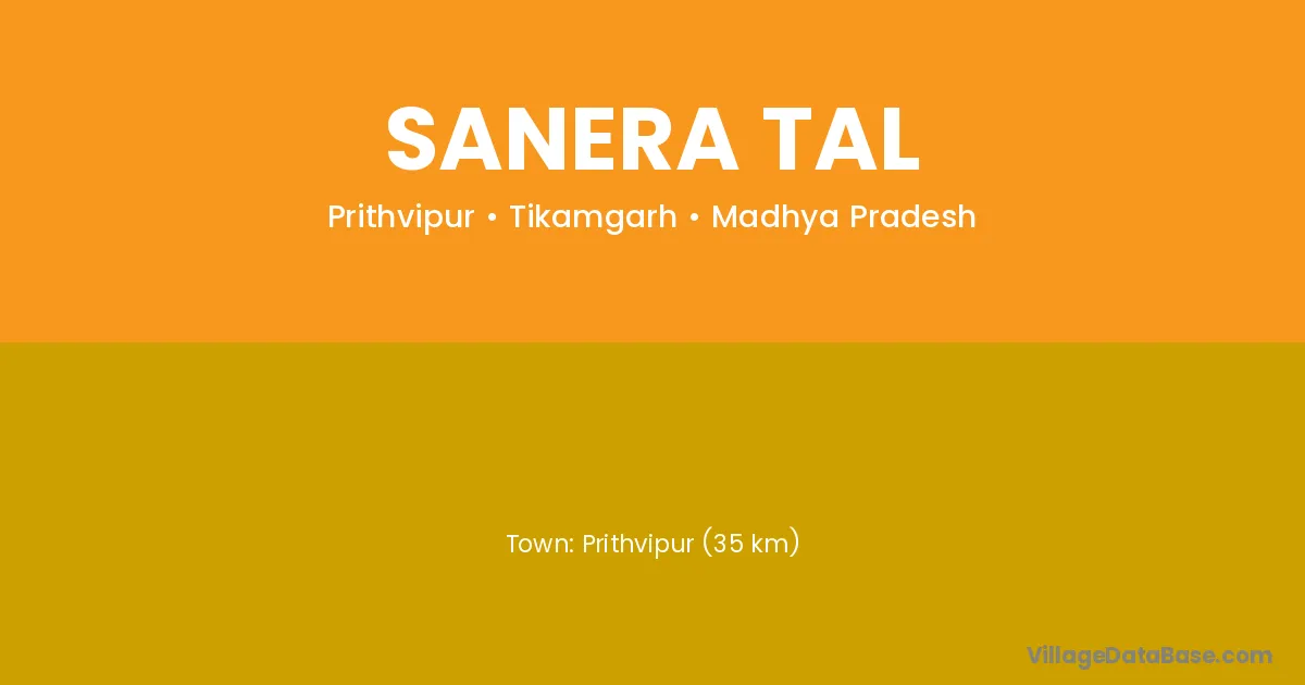 Prithvipur (35 km) is the nearest town to Sanera Tal village for major economic activities and is located approximately 35 km away.