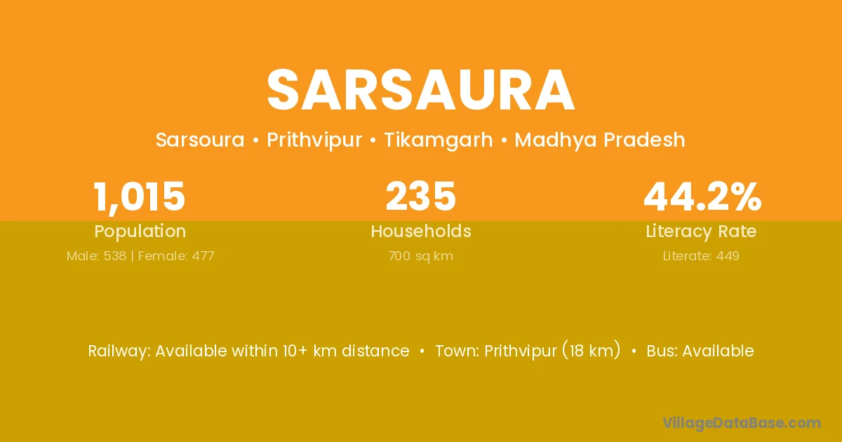 Prithvipur (18 km) is the nearest town to Sarsaura village for major economic activities and is located approximately 18 km away.