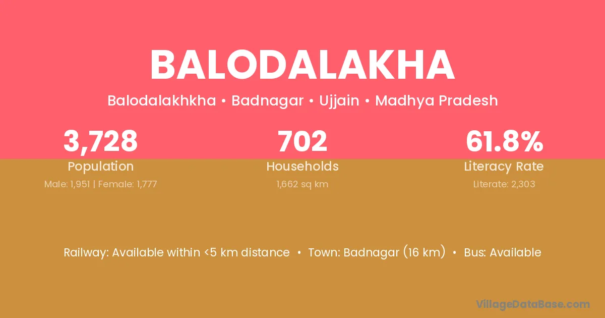 Badnagar (16 km) is the nearest town to Balodalakha village for major economic activities and is located approximately 16 km away.